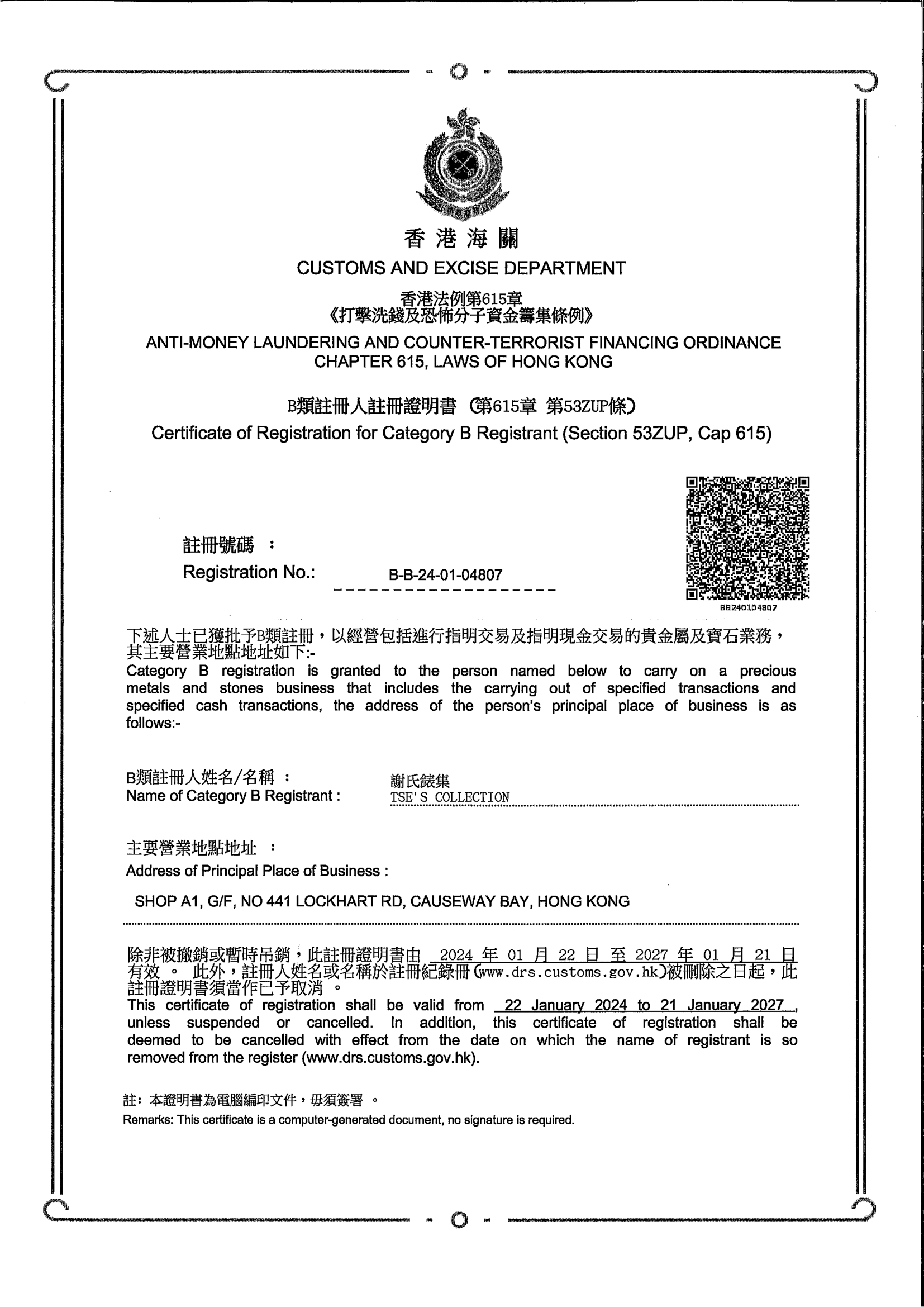 Address : Shop A1, G/F., Lockhart House, 441 Lockhart Road, Hong Kong Telephone number: 852 28336573 Email Address : tsescollection@yahoo.com.hk